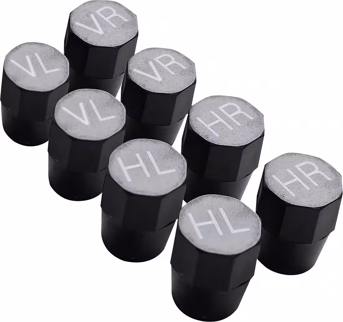 The 8-piece wheel marker set from Eufab simplifies wheel identification. The valve caps remain on the wheels at all times, even while driving. The wheel markers are weatherproof and universally compatible. The set includes valve caps for two sets of tires (e.g., summer and winter).
