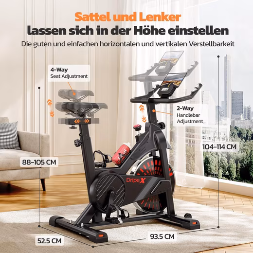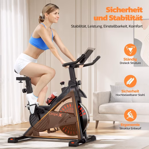 - The training computer always keeps an eye on data: The frame of the indoor bike is made of steel and therefore has a high level of stability. With a maximum user weight of 150KG