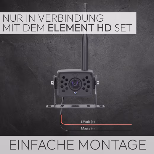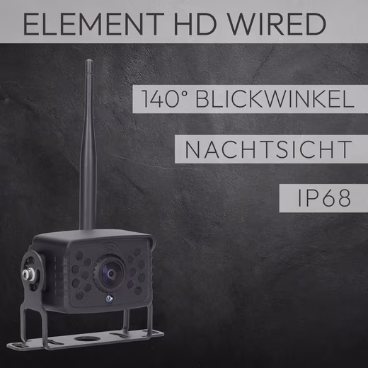 The ELEMENT WIRED HD wireless camera is the ideal expansion camera for your existing ELEMENT system. Whether ELEMENT HD , ELEMENT WIRED HD , or ELEMENT WIRED PRO HD – this camera is fully compatible and offers maximum flexibility for your reversing system.