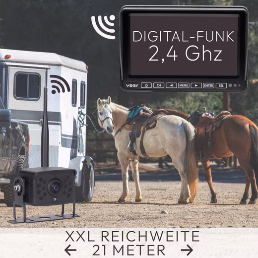 The camera connects directly to a 12–24 volt vehicle electrical system and is designed for continuous operation . Its compact design allows for flexible mounting on all types of vehicles – whether motorhome, horse trailer, truck, or tractor.