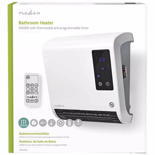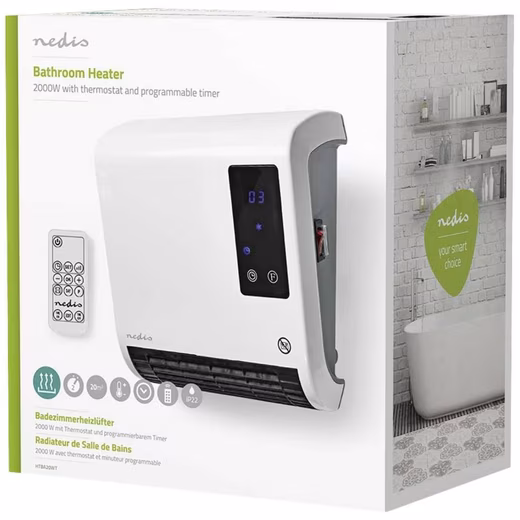 With the power of this bathroom fan heater, any room up to 20m² in size can be heated up quickly. It is suitable for safe use in bathrooms. Thanks to the adjustable thermostat, you can set the temperature exactly the way you want it. The programmable timer allows you to set an on/off schedule for each day of the week with up to six programs per day.