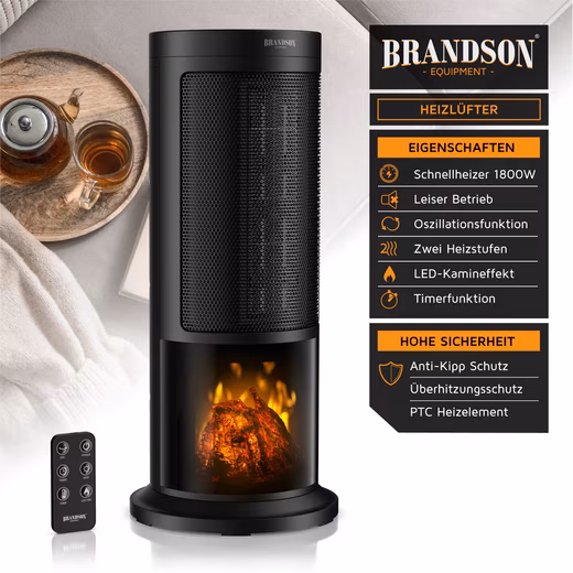 Warm touch meets modern technology: The Brandson fan heater, with its convenient fireplace-