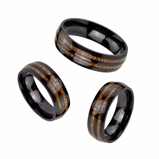 Be the first to review “Finger ring double wood inlay black made of stainless steel unisex (Ring, 1-piece), wooden rows with 3D effect”