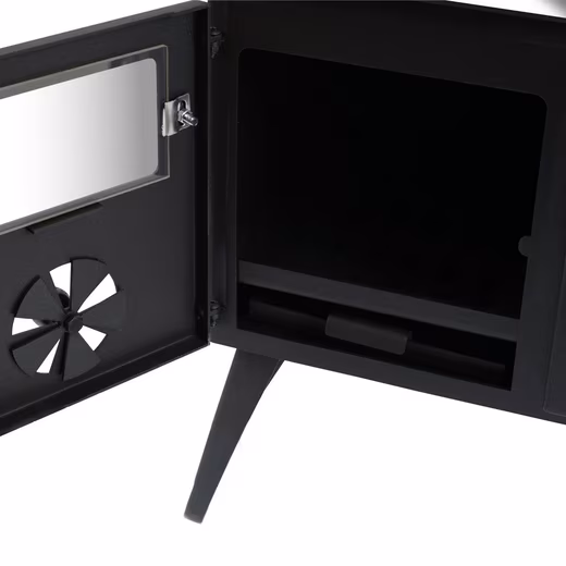 With the CampFeuer tent stove, you can keep your guests warm, whether outdoors or inside a fireproof tent. You can also use the stove for cooking, roasting, steaming, or heating water. Thanks to its modular design, the stove can be set up and taken down quickly. The tent stove is also handy and compact: the stove pipes are stored inside the stove, and the legs fold up – making it the perfect companion for your next camping trip! The air intake regulator and door lock allow you to control the airflow through the stove, giving you better heat control and customization. The viewing window lets you monitor the fire without opening the door.
