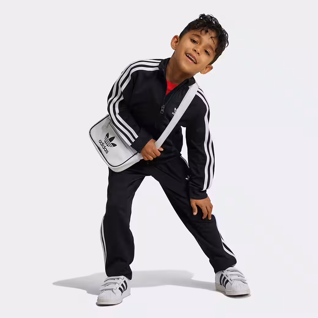 With this legendary tracksuit, your little darling is stylish. It is inspired by adidas styles from the archives and comes with the 3-stripes and a Trefoil logo on the jacket and trousers. Ribbed details and a stand-up collar make the classic silhouette perfect. This product is made with 100% recycled materials. Reusing pre-existing materials helps us reduce waste, limit our reliance on non-renewable resources, and reduce the CO2 footprint of our products.100% polyester (recycled).