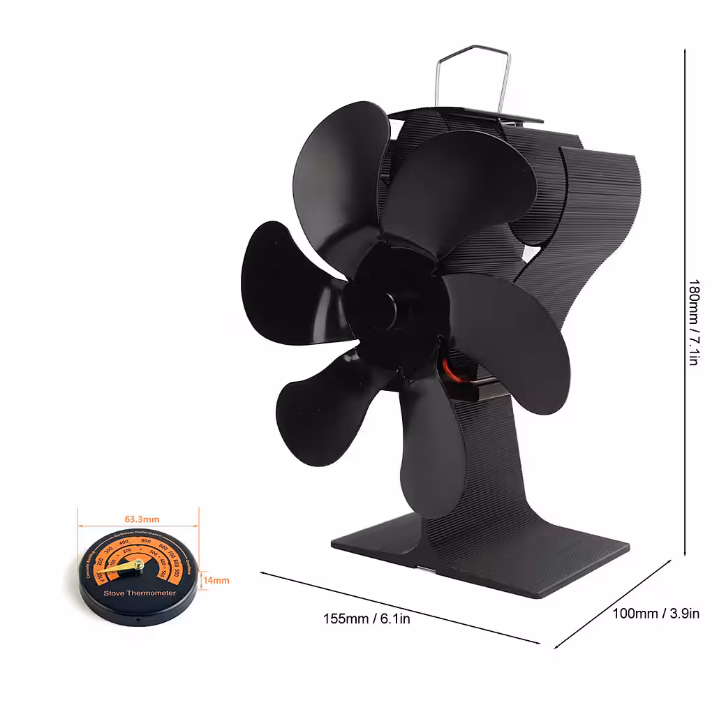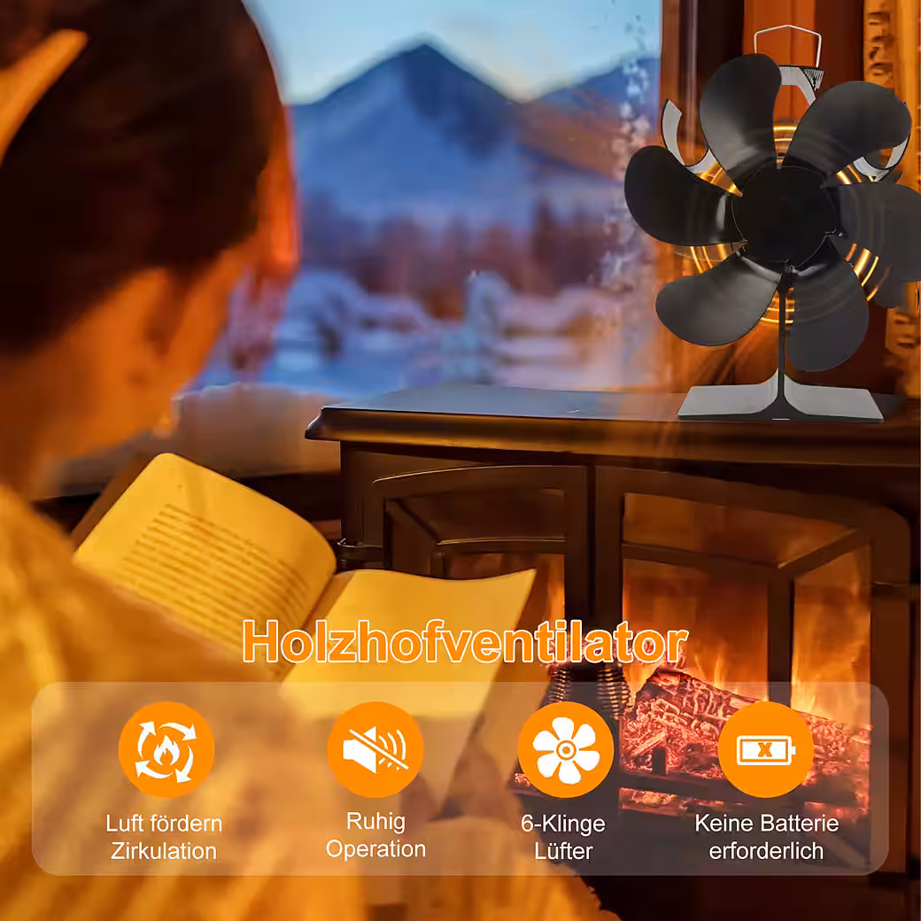 - Since the fan operates entirely without electricity, no additional energy is required, thus making optimal use of the fireplace heat.