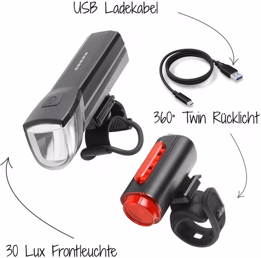 - High-power LED ground lighting for increased visibility and standard rear light with 5 LEDs in a set with a 30 LUX front light.