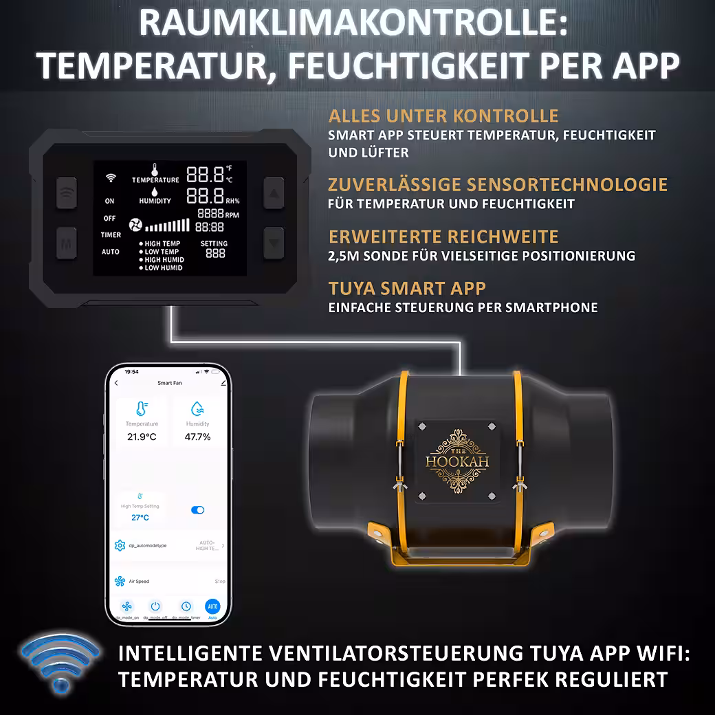 Conclusion: With THE HOOKAH inline duct fan and its advanced WiFi control, you can intelligently and efficiently manage the ventilation in your room. This device offers not only excellent performance and durability, but also the flexibility to precisely regulate air quality according to your needs.
