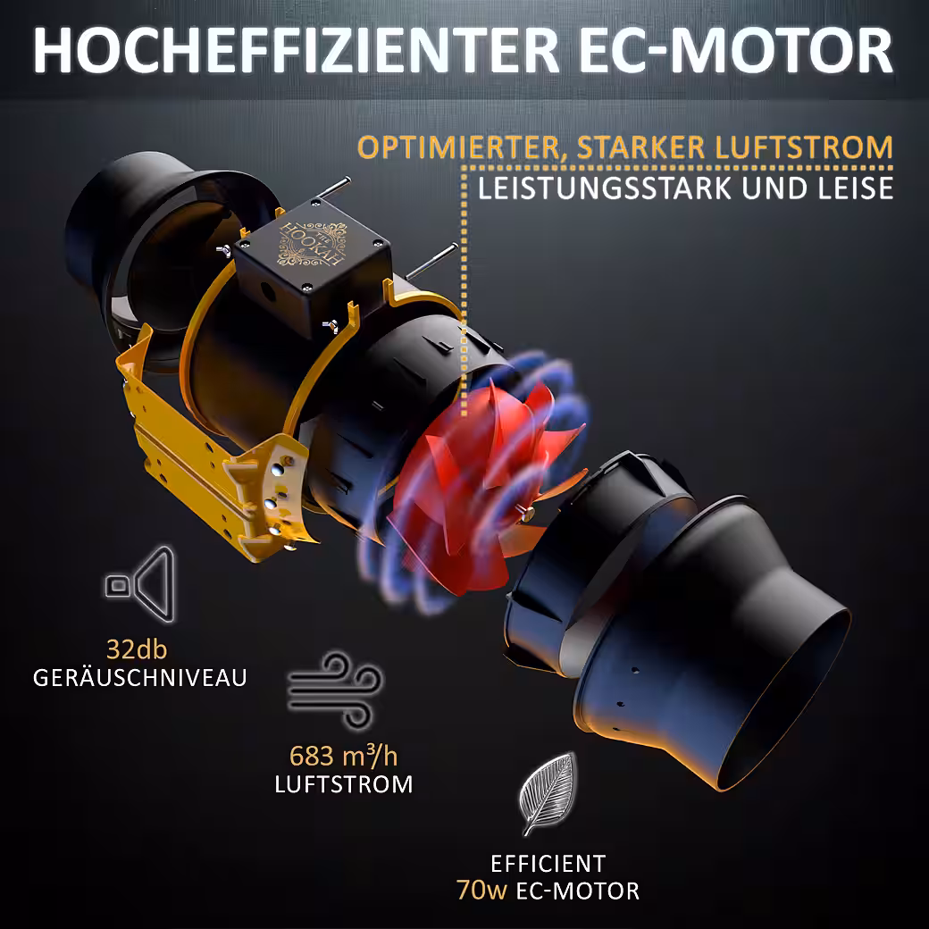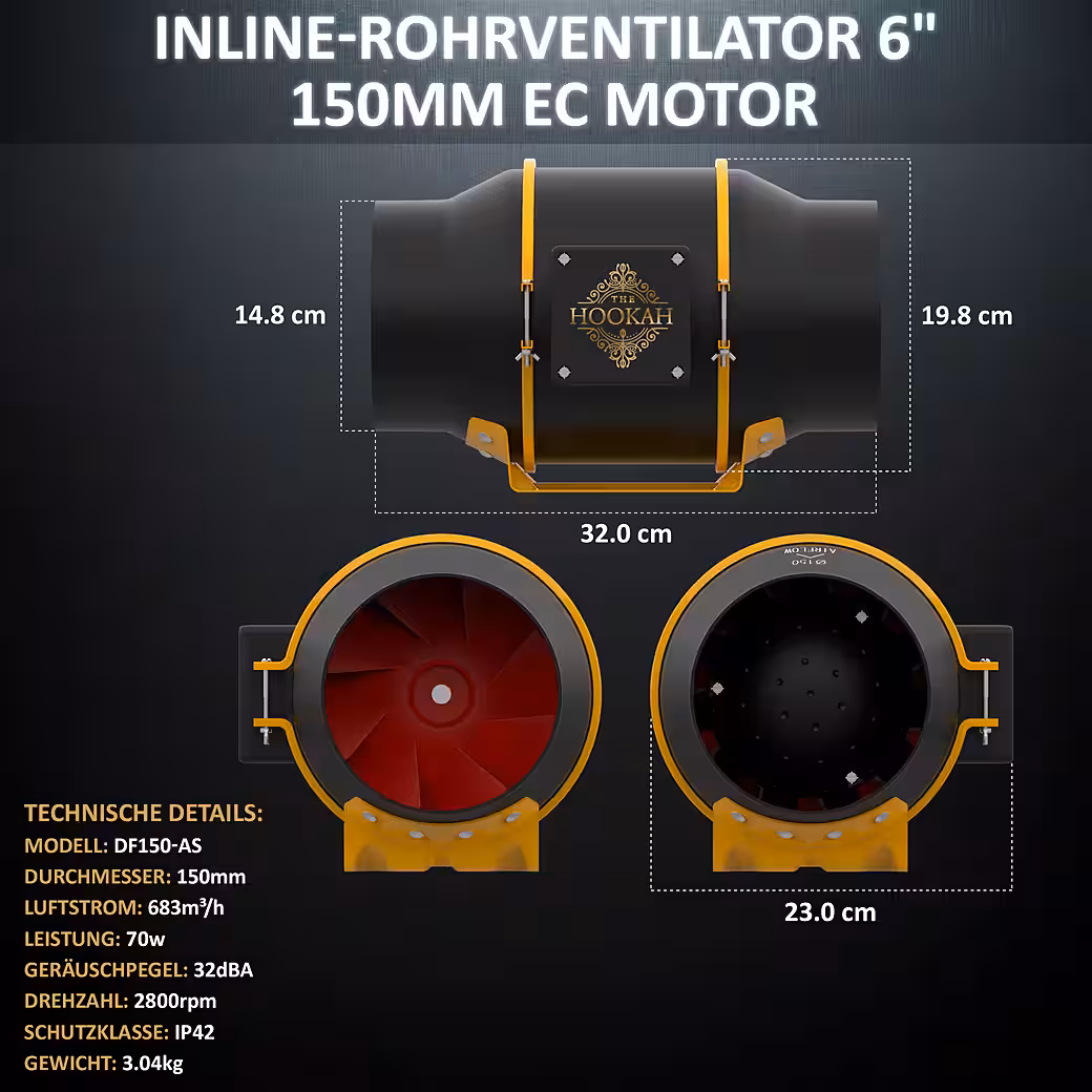 THE HOOKAH Inline Duct Fan 6″ 150mm with EC Motor and WiFi Control – Intelligent Ventilation for Optimal Room Climate Control