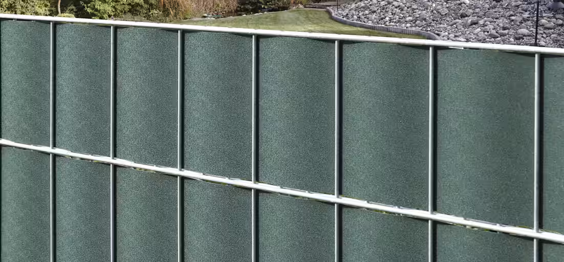 Ideal solution for an opaque and decorative fence with a special ambiance | Color: dark green | Material: polyethylene | Quality: 980 g/m² | 100% opaque | 5 strips, each 201.5 x 19 cm |