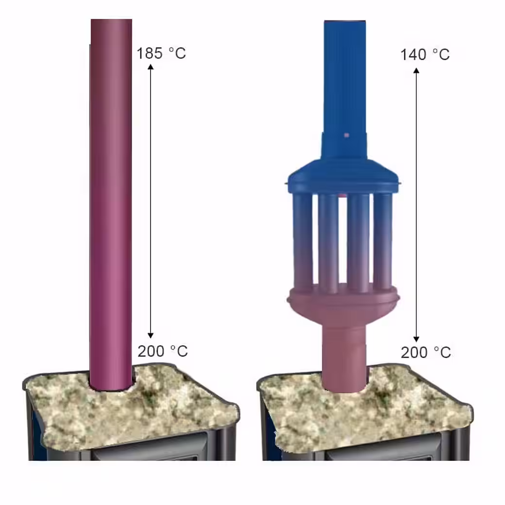 - EASY TO USE: Flue gas cooler is suitable for stoves, fireplaces, wood boilers and wood gasifiers | The pipe is simply inserted between the existing flue pipes of the stove.