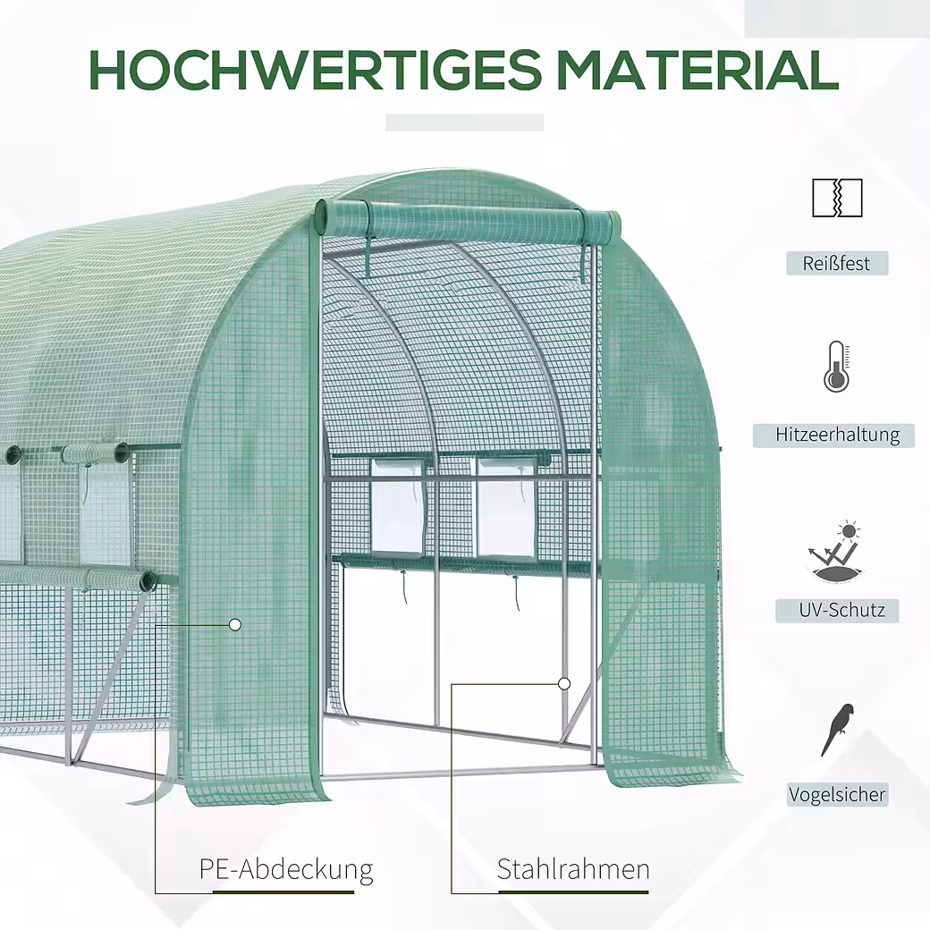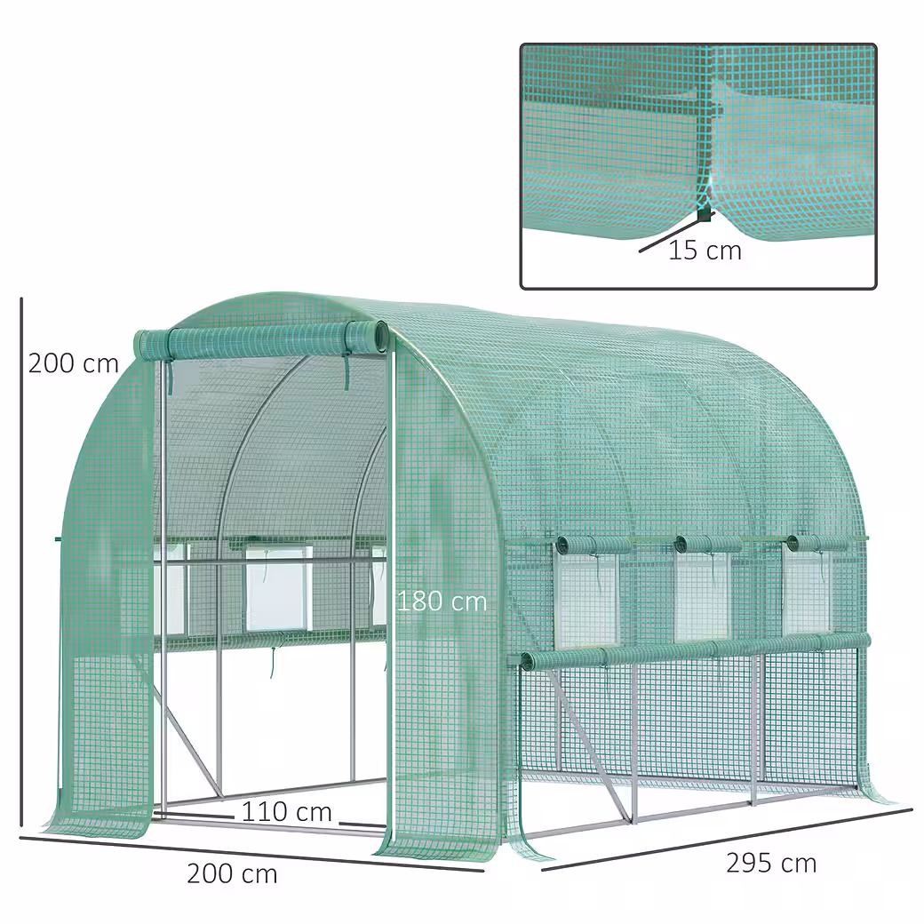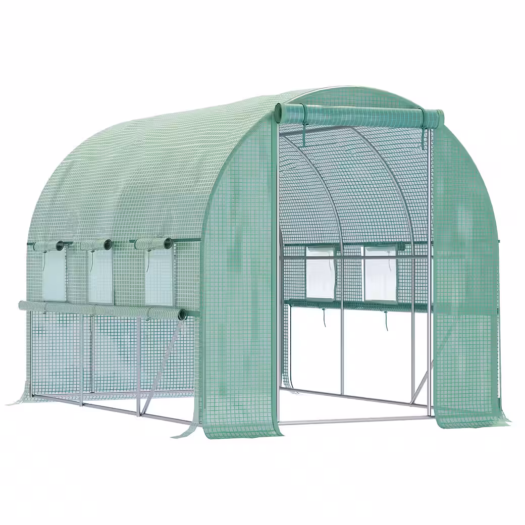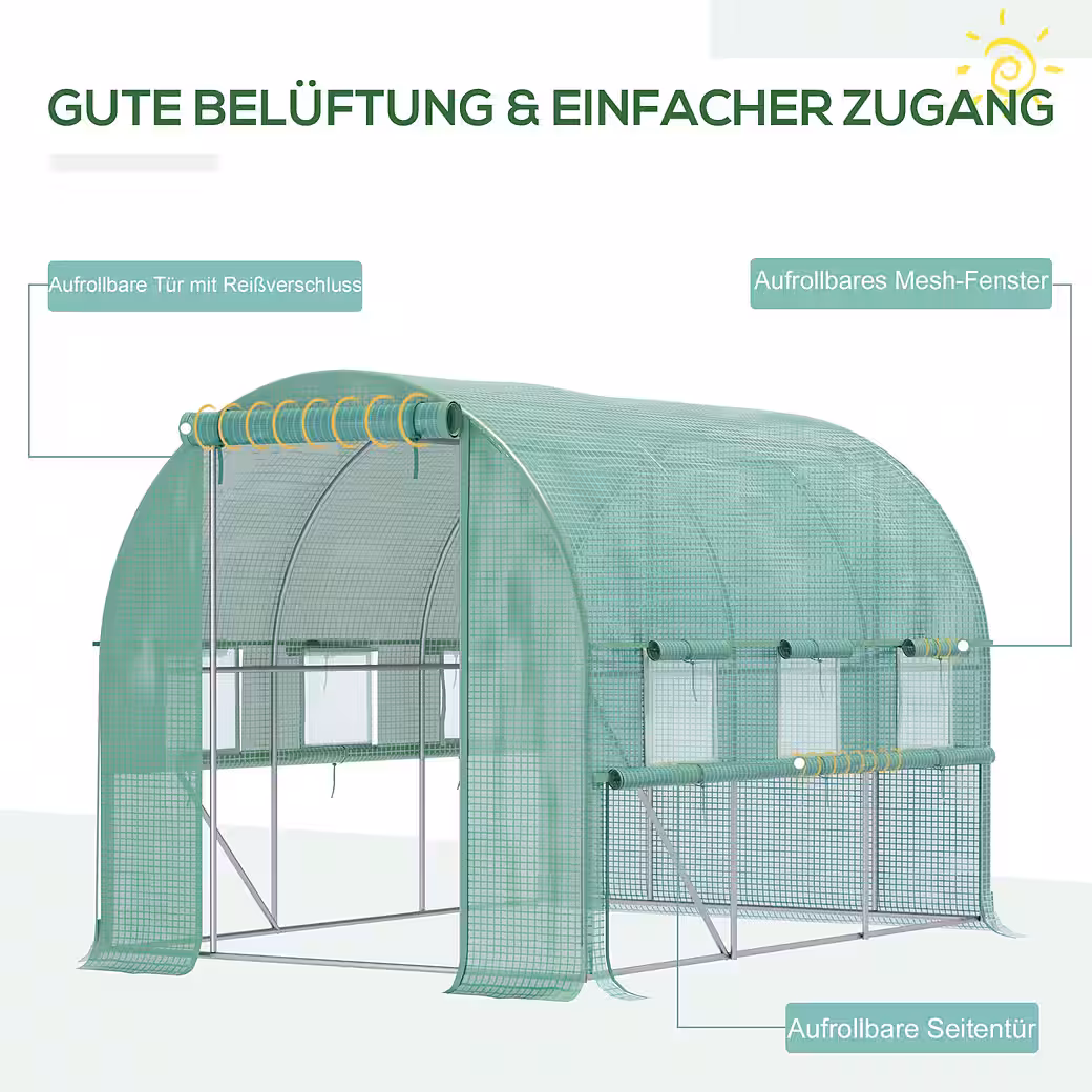 Extend your growing season with Outsunny! Even winter is no problem for our Outsunny polytunnel greenhouse. When winter frosts arrive, your plants are safely protected, allowing you to enjoy fresh vegetables, herbs, and fruit all year round. Thanks to the greenhouse’s roll-up walls, doors, and windows, you have easy access and ventilation options to control heat, sunlight, and humidity to your liking!