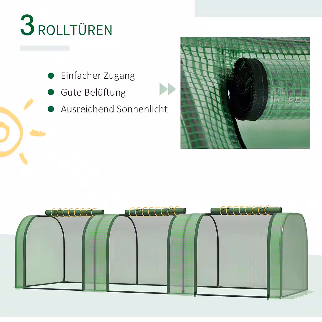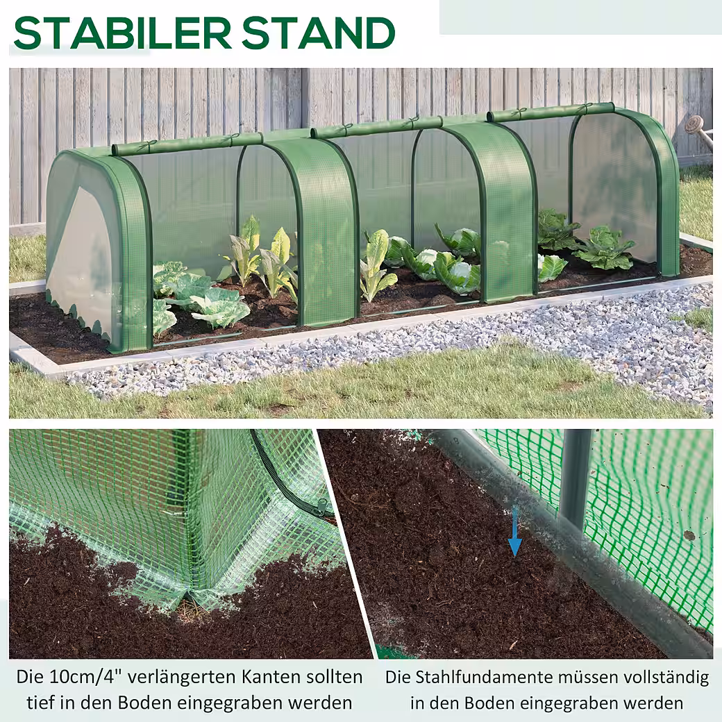 Create a warm and safe home for your favorite plants with this tunnel greenhouse from Outsunny. It features a sturdy steel frame with a durable plastic cover. Its lightweight construction allows for easy relocation when needed, while the steel frame provides excellent stability. Finally, the zippered side doors offer convenient access to your plants and allow you to control ventilation as desired.