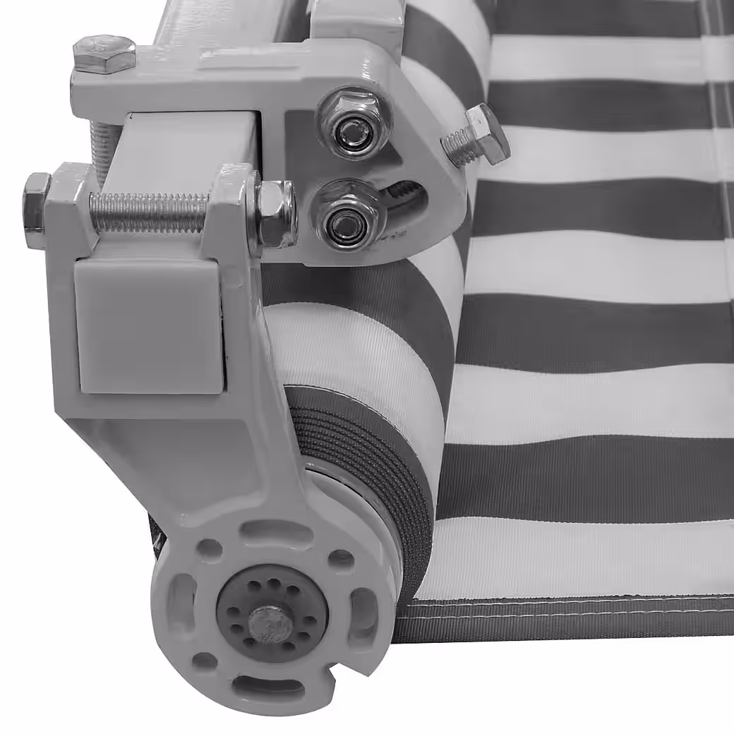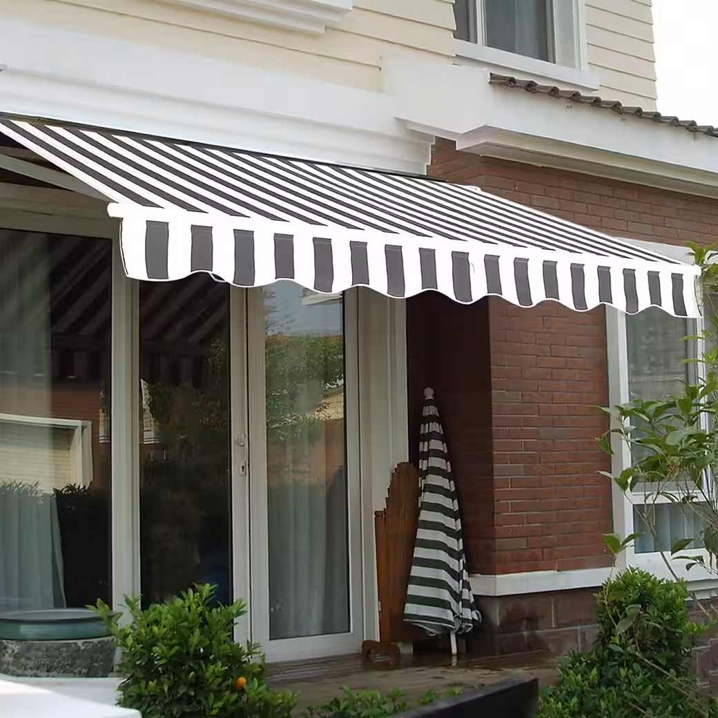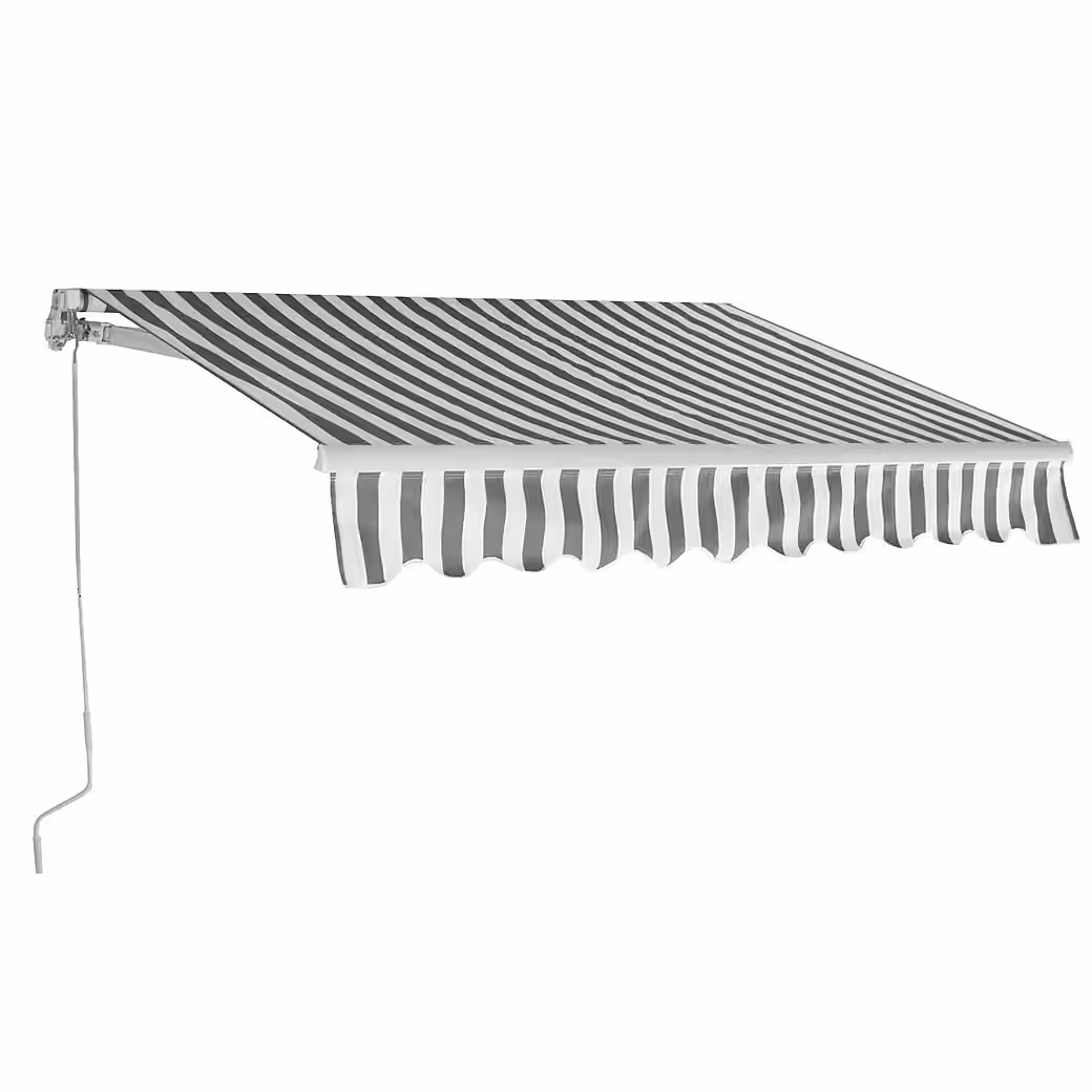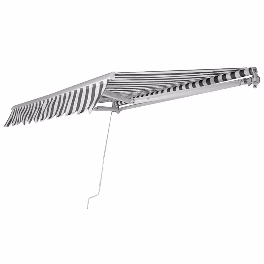 Our manually retractable awning can be adjusted and fixed in the desired position by turning the hand crank and fully extended up to approximately 2.50 m for optimal sun protection. Made of faux leather, the awning is waterproof, UV-resistant, and easy to clean. The sturdy, powder-coated aluminum frame ensures a long lifespan, is extremely robust, and can withstand all weather conditions. Install our sunshade awning above your door or balcony window for pleasant shade, or use it on your patio, in your café, or restaurant.