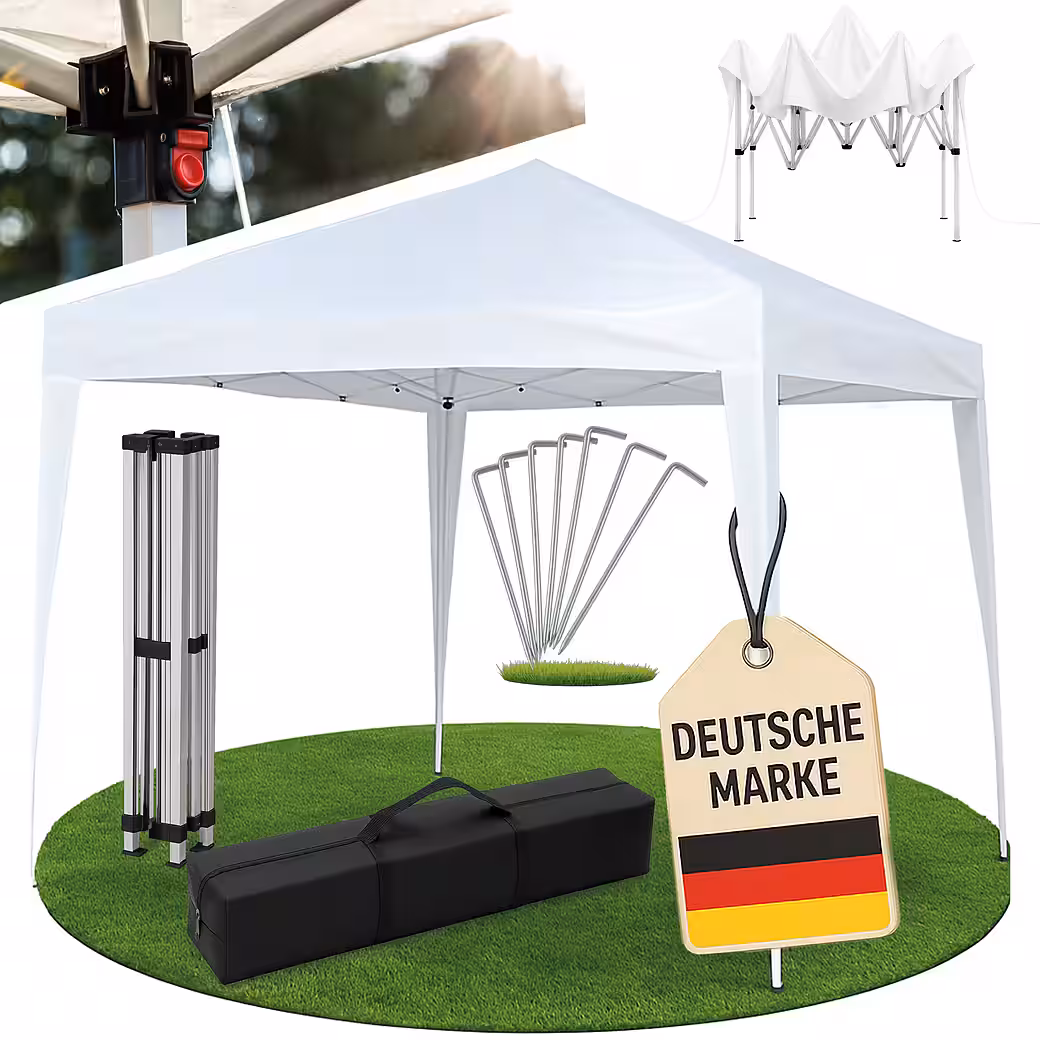 What’s the most annoying thing about gazebos? That’s right – setting them up. Ideally, the garden party guests arrive two hours early so that five people can work together to sort, bend, and assemble the poles. Only to realize at the end that a part is missing.