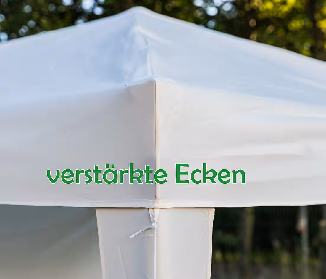 The enormous Easy-Up folding pavilion, measuring 3 x 6 meters, is very spacious and offers ample room for a variety of events, from small gatherings to a large dining table for up to 20 people . With overall dimensions of approximately 3 x 6 x 2.6 (H) meters, it is also generously sized. The high peaks ensure a consistently pleasant climate under the pavilion. This allows heat to escape upwards during the day and provides a comfortable balance in the evening as temperatures drop.