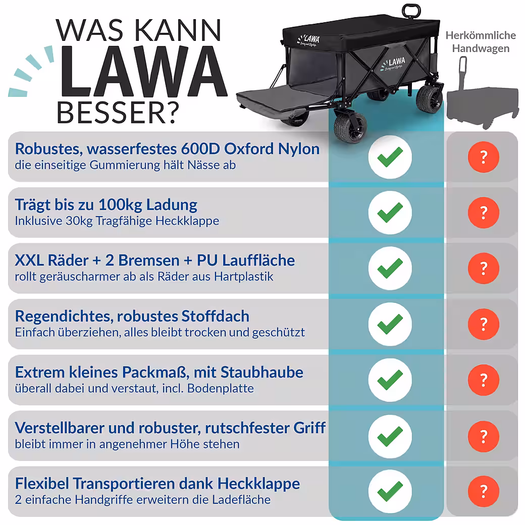 - The beach cart is an ideal companion for outings with children, shopping trips, festivals, in the garden, ……. .