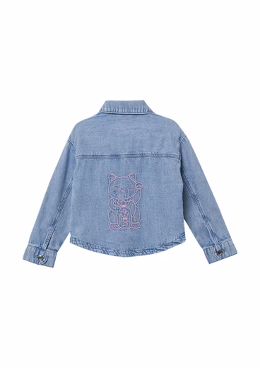 Functional jacket denim shirt with used effect and embroidery