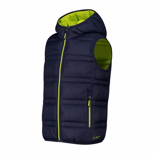 CMP Kid Vest Fix Hood. Comfortable vest with a fixed hood. The vest features a high-closing collar and side zip pockets. Material: 100% polyamide.