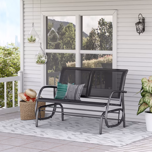 Our high-quality balcony deck chair in classic style from Outsunny fits perfectly in your garden or on veranda. The swing function ensures a relaxing day in the garden and the sturdy metal construction offers long durability. The fine mesh cover on the seat and backrest is breathable and invites you to sit comfortably. Just take a seat on this great garden rocking chair and let your mind wander.