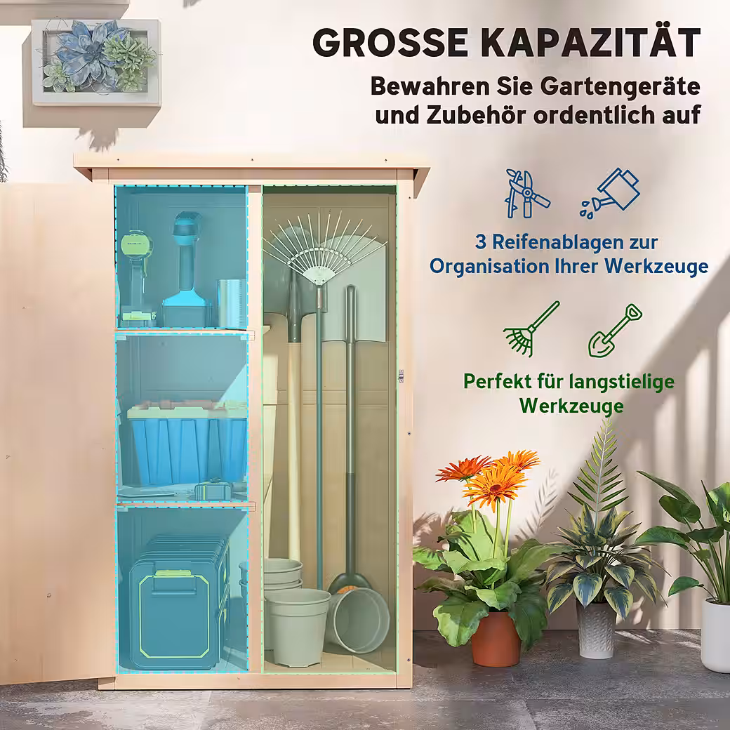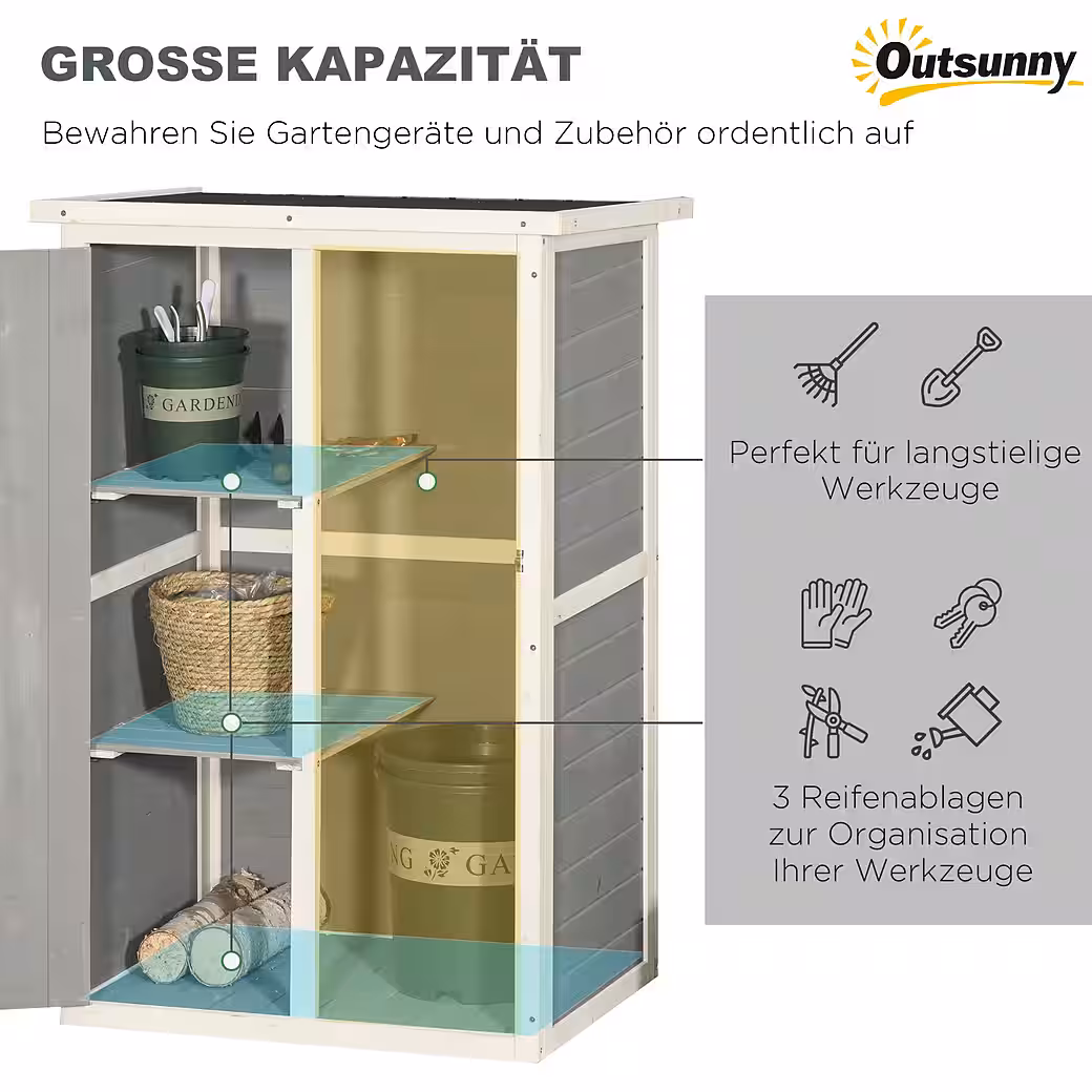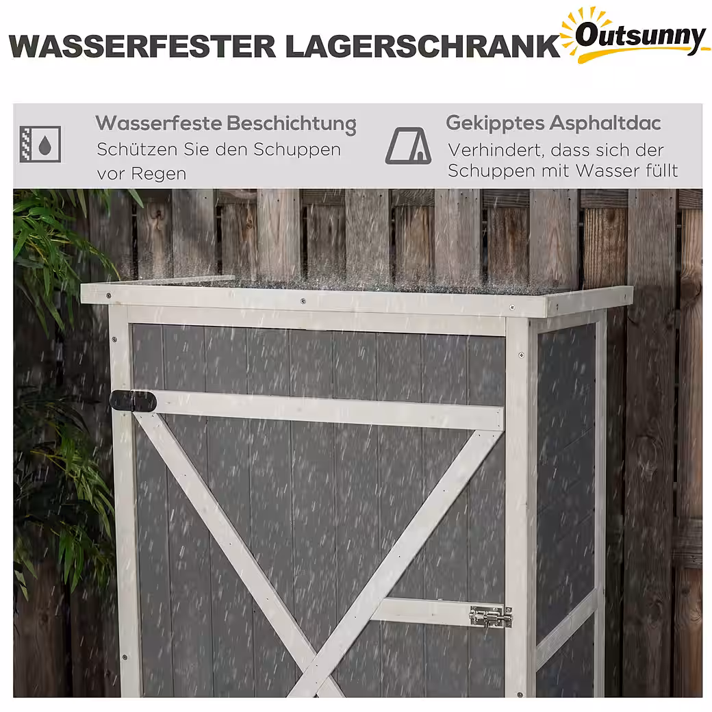 Organize your garden with this practical garden shed from Outsunny! Despite its compact design, the shed offers ample space for a variety of tools and equipment. Built to be particularly robust and finished with a weatherproof coating, this garden shed will provide years of reliable service. The sloping roof allows rainwater to run off easily, and the lockable door prevents animals from getting in.