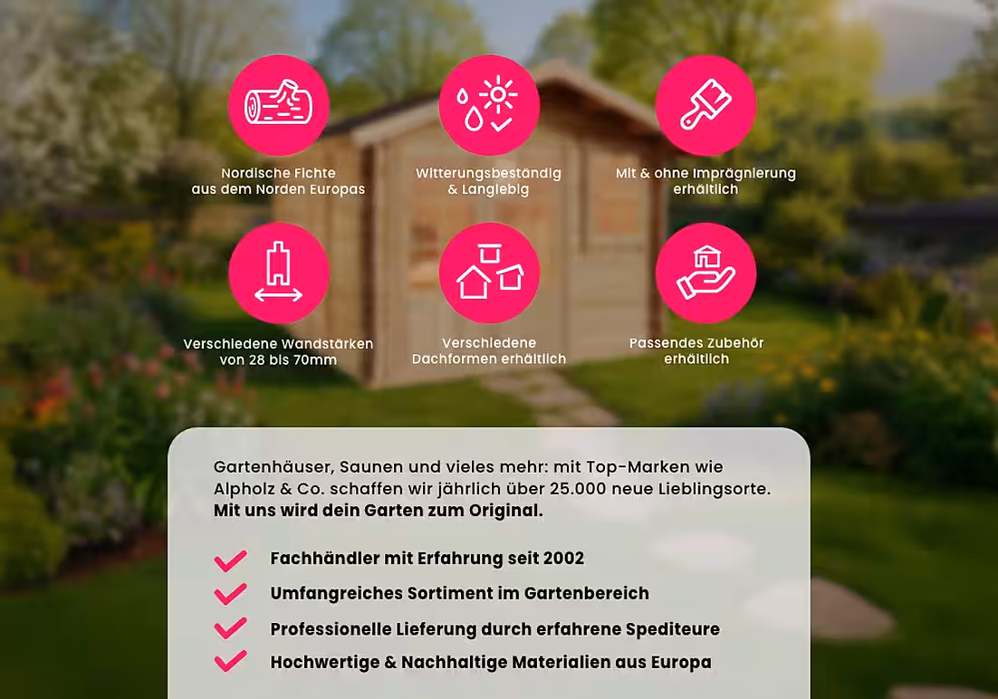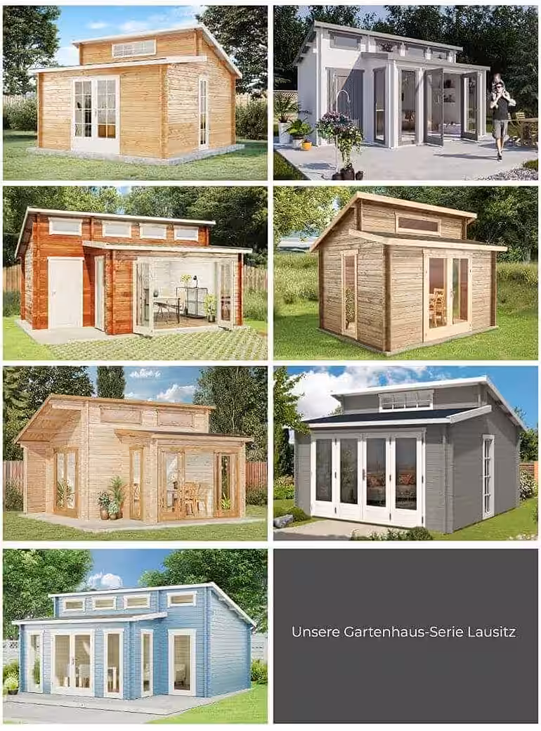 The Lausitz 5-sided garden house is one of our most popular garden houses. Its distinctive feature is the double-pitched roof, which gives the house a modern, clean-lined design. Inside, this creates a pleasantly high ceiling, and the skylights allow extra light into the garden house. An additional extension provides storage space for garden tools. This model is ideal as a pool house, offering you and your pool equipment perfect shelter.