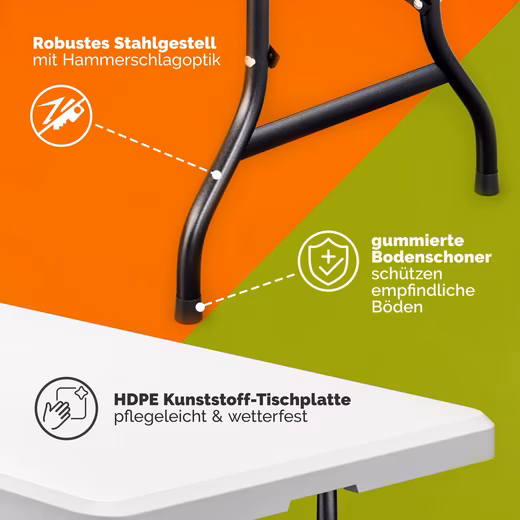 - INDOOR & OUTDOOR – The easy-care HDPE plastic and the robust steel frame make the table weatherproof. Anti-slip legs protect floors indoors.