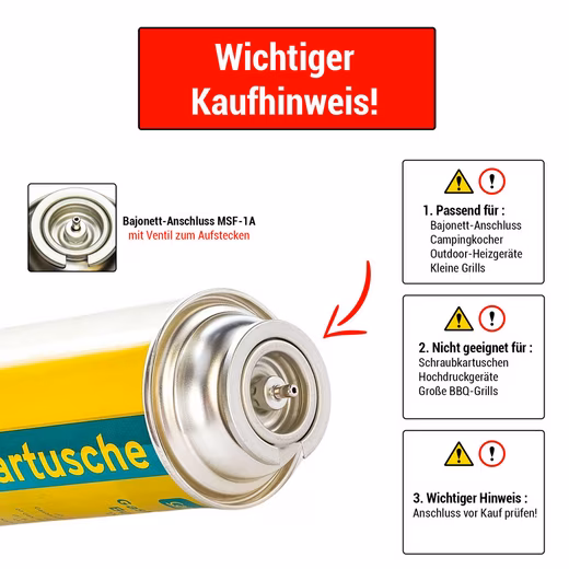 - [MULTI-SIDEDLY DEPLOYABLE] Campingman gas cartridges are suitable for all devices that can be operated with a standard cartridge 227 g.