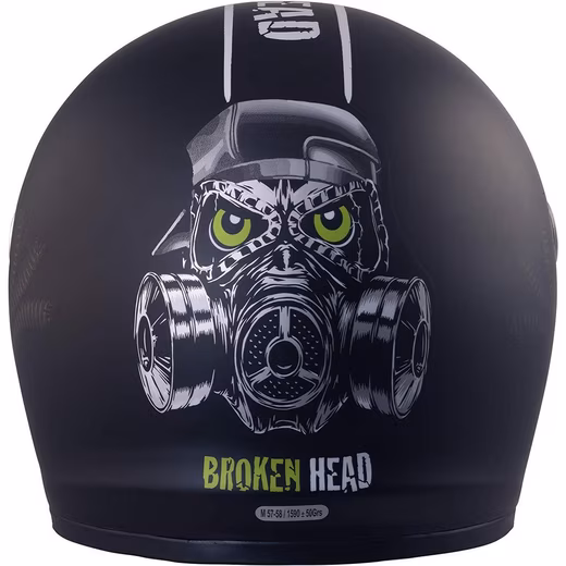 Are you fed up with boring, bland motorcycle helmets? Do you want something truly special because you’re into aggressive and menacing looks that reflect your “I don’t give a damn” attitude? Then this helmet is perfect for you! With this helmet, you’ll not only leave a lasting impression but also command the respect you deserve. You’ll definitely enjoy it. The gasman’s venomous green eyes on the back of the head will startle anyone you overtake. The Broken Head Gasman helmet comes with two visors: one clear and one black. You can easily swap them on the go without any tools. As it’s a vintage helmet, it features an exclusive screw-in visor mechanism, and all you need to change the visor is a coin of any kind. Vintage style doesn’t mean old and smelly. Your helmet will always stay fresh and clean because the inner lining is removable and washable. You can easily wash it in the washing machine, and it will be dry and clean again in no time. Furthermore, the inner lining feels incredibly soft and comfortable against the skin. If safety is important to you, then this helmet is a perfect match. First, the helmet shell is made of polycarbonate. Polycarbonate helmets are known for their high stability and low weight. Second, the helmet is equipped with the most secure double-D ring closure, ensuring it stays firmly in place on your rebellious head. So, what are you waiting for? Get your Gasman and be the bad guy on the road!