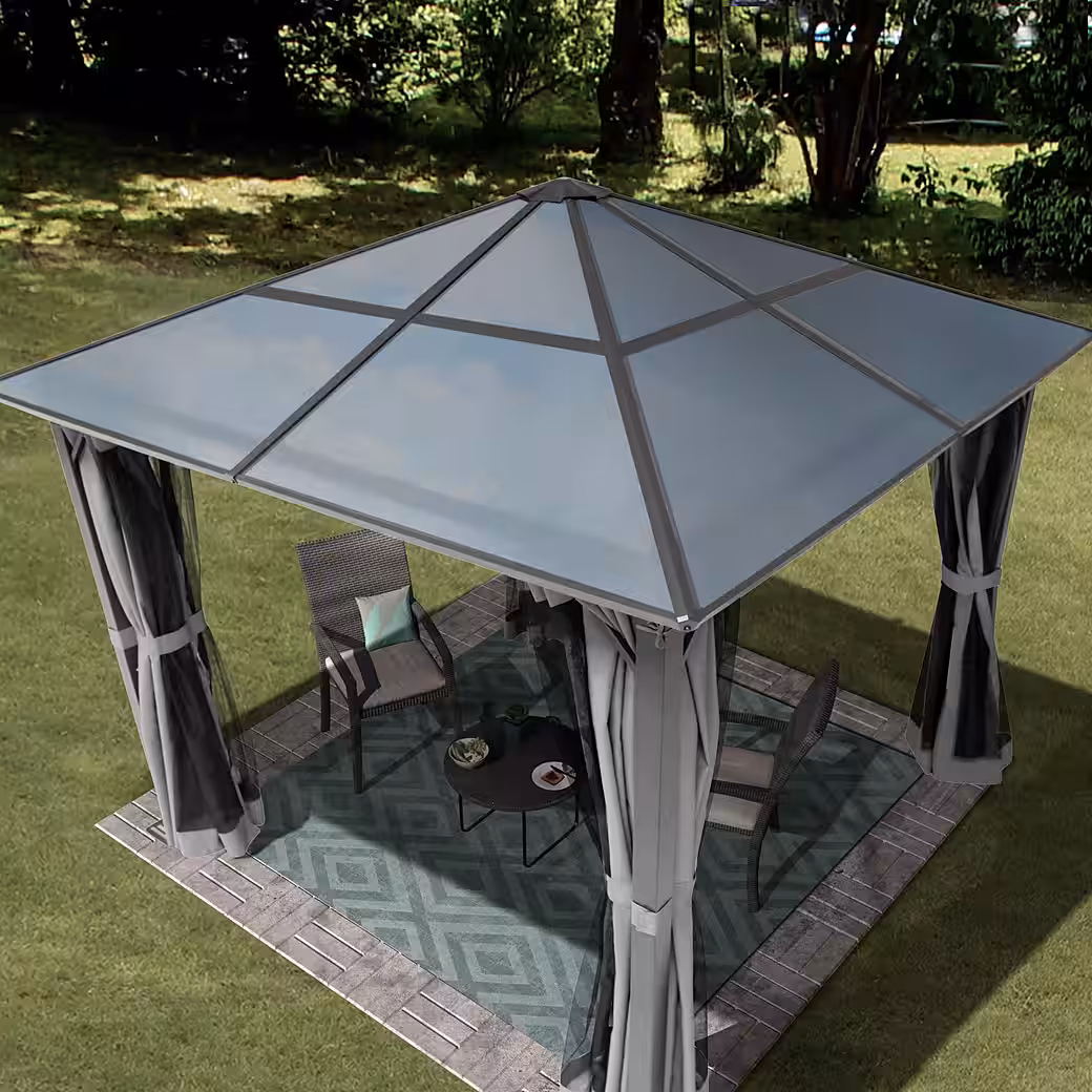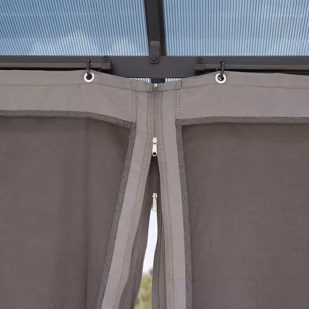 • EVERYTHING INCLUDED: Aluminum roof struts, steel posts, polycarbonate roof panels, 4 side panels & 4 mosquito nets including mounting hardware, 8 concrete anchors, assembly instructions