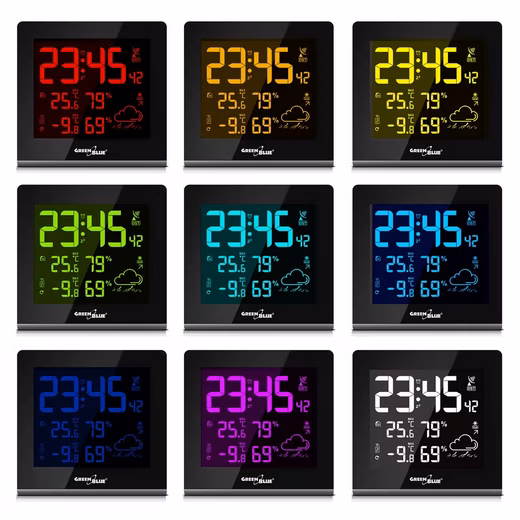 Multicolor weather station with multi-colored display in 9 colors – GreenBlue GB151