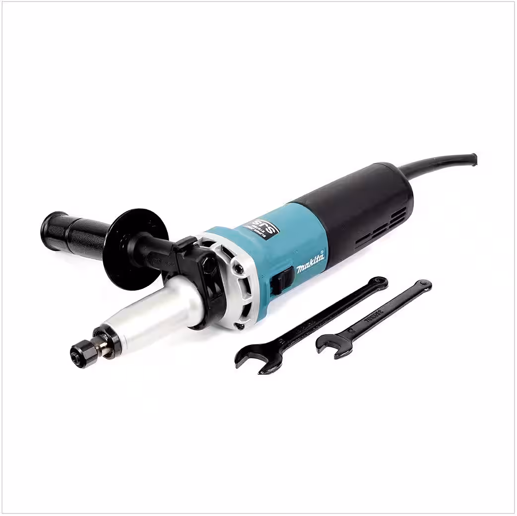 Thanks to its 750-watt motor, the Makita GD 0800 C straight grinder is a very powerful tool. With electronic speed control and soft start, precise work is also very easy to perform. The constant speed electronics ensure that a constant speed is guaranteed even under heavy load, and the Super Joint System prevents jamming and kickback to optimally protect both the machine and the user.