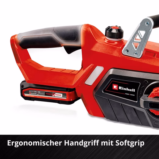 The Einhell GE-LC 18/25 Li cordless chainsaw kit offers all the components needed for a powerful start or expansion into the Power X-Change family. With Einhell’s cordless tools, the working radius for ambitious DIYers and hobby gardeners is virtually unlimited: tripping hazards caused by tangled cables, limitations due to short cords, or the frustrating search for an extension cord are a thing of the past thanks to the Power X-Change series. One battery and one charger can be used for all tools in the series. The kit includes the GE-LC 18/25 Li cordless chainsaw: a powerful Einhell product, combined with the sharpness of the OREGON quality bar and chain. This handy chainsaw is a reliable tool for thinning and felling small and medium-sized trees, processing firewood, and cutting and dismantling construction timber. The Einhell chainsaw is comfortable and safe for any hobby gardener to handle. For optimal user safety, the saw features kickback protection with an instant mechanical chain brake. This activates immediately if the saw kicks back, stopping the chain instantly. A chain catcher catches the chain if it comes off. The robust metal claw stop ensures safe and comfortable guidance during all tasks, while the ergonomic handle of the Einhell cordless chainsaw provides a firm and comfortable grip. Chain tension can be adjusted without tools, and chain replacement is also tool-free. The oil reservoir for the automatic chain lubrication system can be easily refilled thanks to the large oil filler opening. The set includes a system fast charger for all Power X-Change batteries and a Power X-Change battery: This high-performance battery features a charge level indicator. Three LEDs allow for easy monitoring of the battery charge.