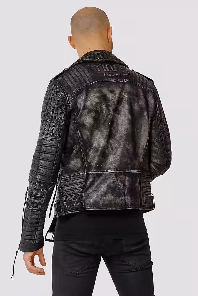 Cool, casual, and versatile, the ” Geralt ” leather jacket by trueprodigy is a trueprodigy piece. Its vintage wash, asymmetrical zipper , and lapel collar with snap fasteners give the jacket its signature biker look . Stitching on the arms and shoulders, as well as stylish eyelets , add subtle highlights . This cool jacket is perfect for any retro, rockabilly, or biker outfit. Whether you’re wearing it for a sporty look or a party, the distinctive design will make you a standout in the city or at your next party. See for yourself with the stylish “Geralt” leather jacket by trueprodigy.