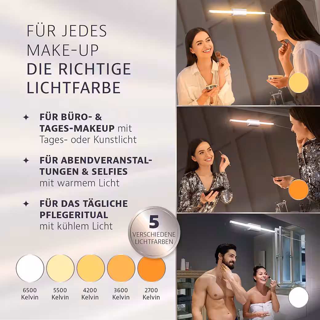 - 5-IN-1 LIGHT – 5 different daylight settings are each ideally suited for all make-up occasions – from daylight for the office to the warmest light color for evening make-up.