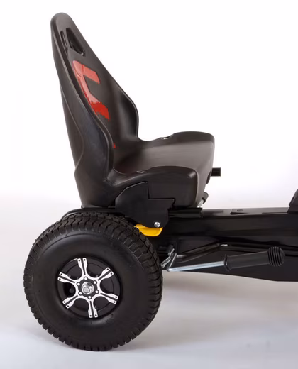 Thanks to the high-quality pneumatic tires, the go-kart glides effortlessly over various surfaces, while the durable plastic rims ensure longevity and stability.