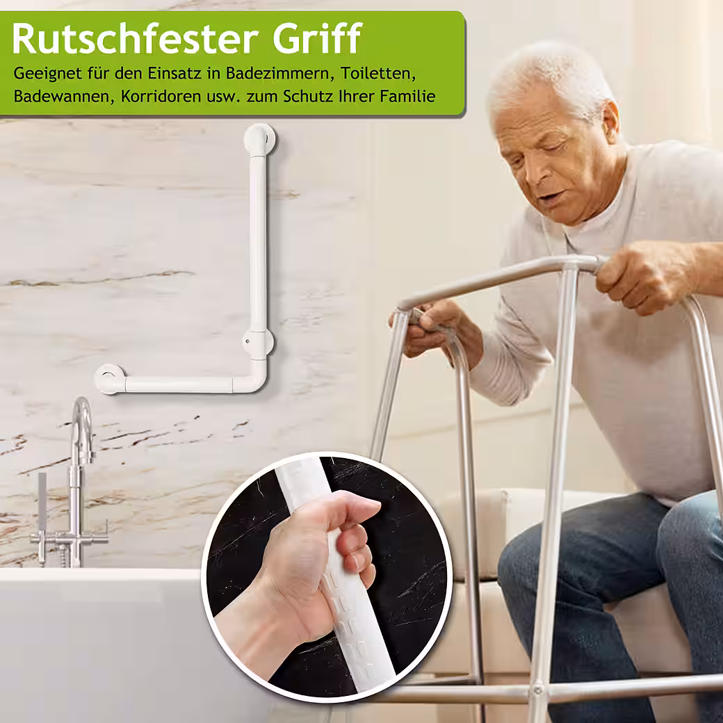 Stylish Design: The bathtub grab bar is made of high-quality 304 stainless steel and non-slip nylon. The trendy matte white color scheme at a 90° angle looks simple and modern, increasing both safety and style in the bathroom, making it more beautiful and safer. Maximum load capacity: 200 kg.