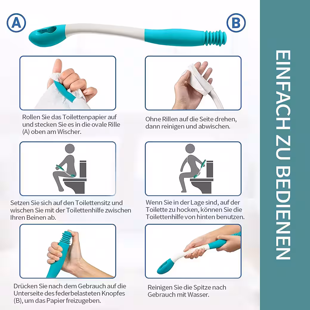 Wipe-on toilet aids:Â Designed to help people who have difficulty bending, twisting, and reaching. This toilet aid allows the user to be more independent in and around their own home. It enables individuals to use the toilet in an easier and more dignified way.