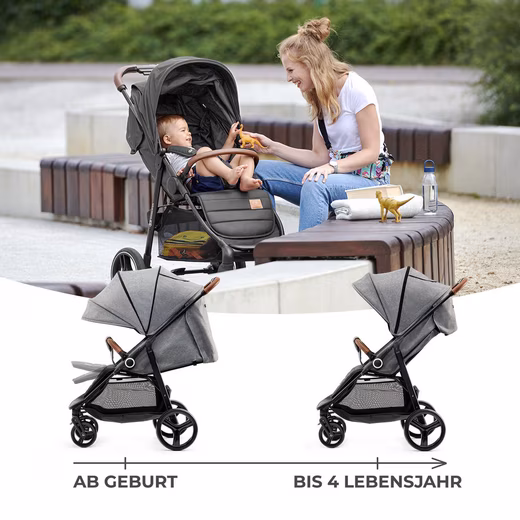 The GRANDE PLUS stroller is the perfect solution for city-dwelling parents. Suitable for children from birth up to 22 kg, this stroller will accompany your child for several years, and its thoughtful design makes carrying it around town much easier. Thanks to the CLICK & FOLD system, you can easily fold the stroller with just one hand. All wheels are equipped with suspension, ensuring a comfortable ride even on cobblestones or uneven surfaces, and the continuously adjustable backrest, from sitting to lying position, allows you to quickly create the perfect spot for a nap in the fresh air. The large foam tires are puncture-proof and never need inflating.