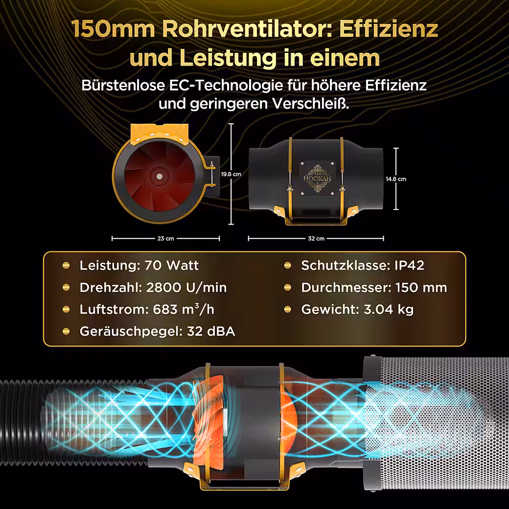 Accessories:Â Includes 150mm PVC exhaust hose, 24-hour timer, hygrometer and mounting straps for easy installation.