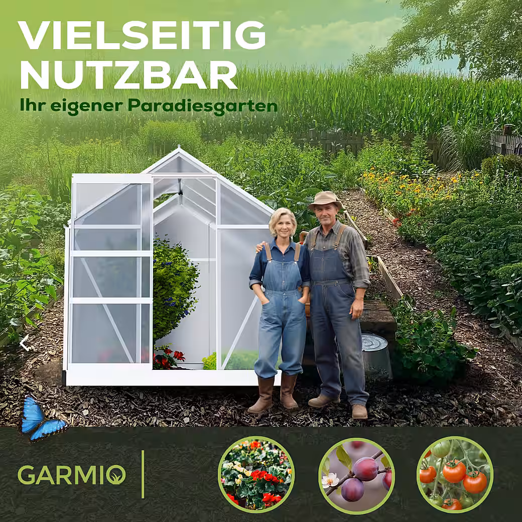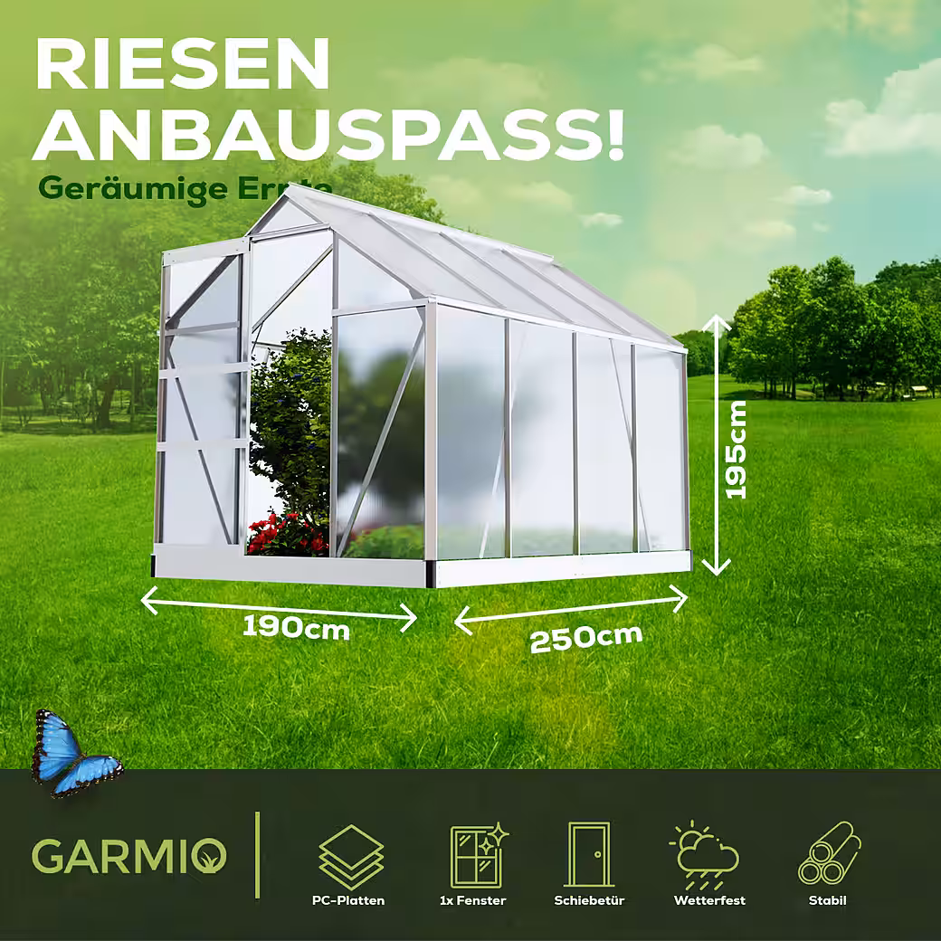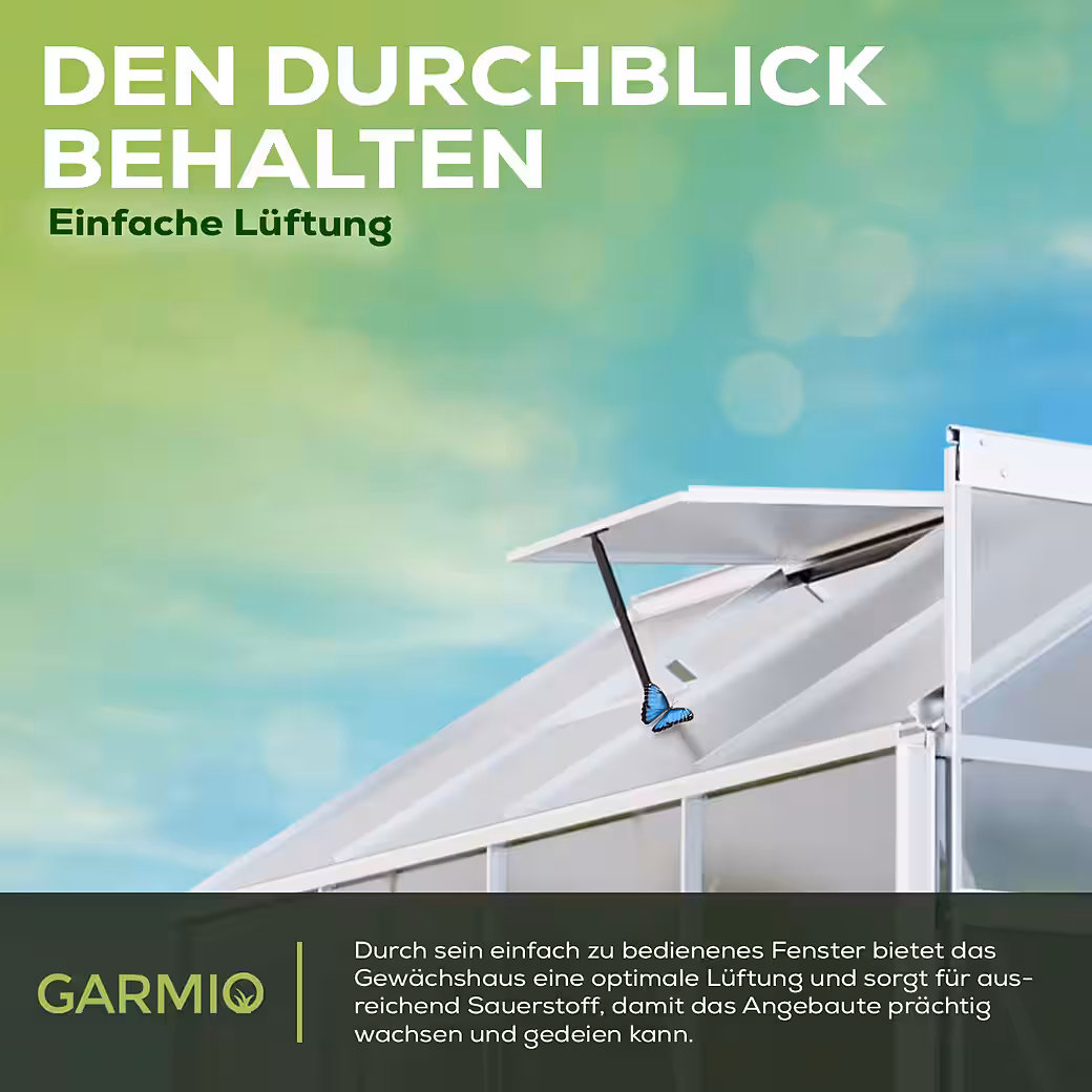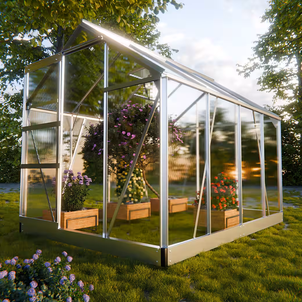 Our greenhouse is made of robust and durable aluminum and offers optimal protection for your plants from the elements. The twin-wall polycarbonate panels are also winterproof, as well as temperature and UV resistant.