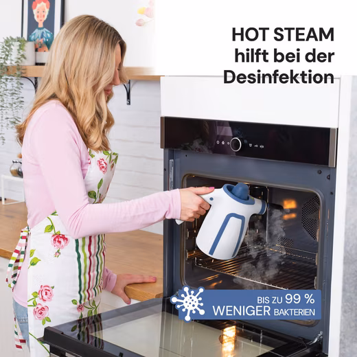 - Disinfection of surfaces by hot steam that destroys up to 99.9% of microorganisms without chemicals, ideal for allergy sufferers and parents.