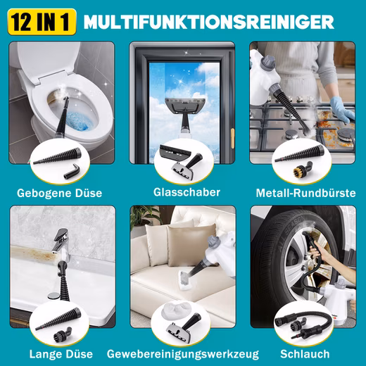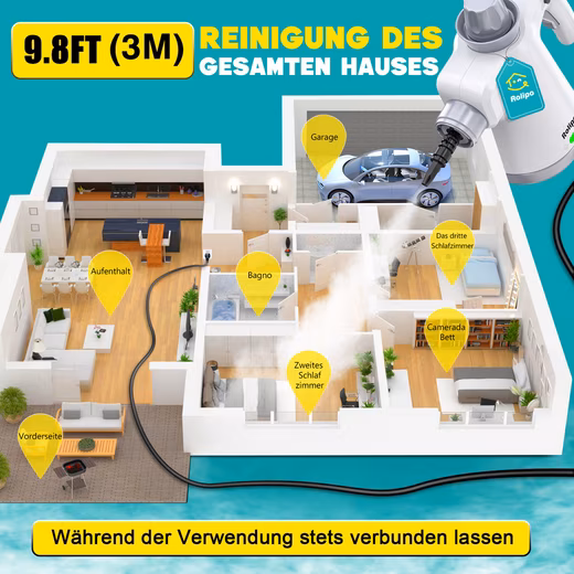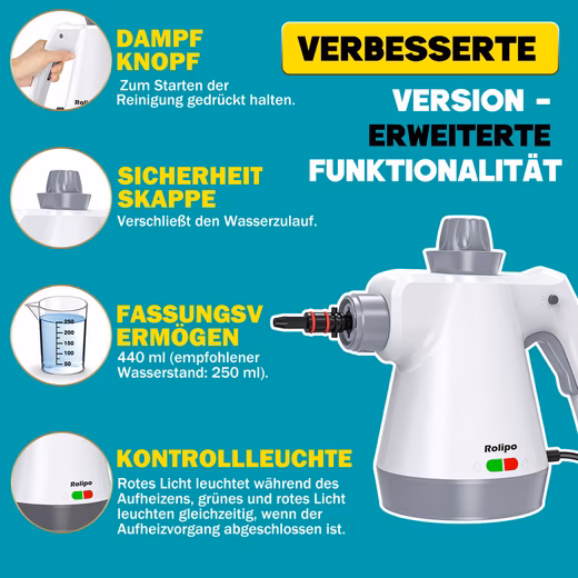 Extensive Accessories & Service – The Rolipo portable steam cleaner comes with a 12-piece accessory set, including: curved spray head, extendable folding tube, 4 brush attachments (incl. brass brush), textile steamer, window/door squeegee and other accessories. This means that you always achieve optimal cleaning results.
