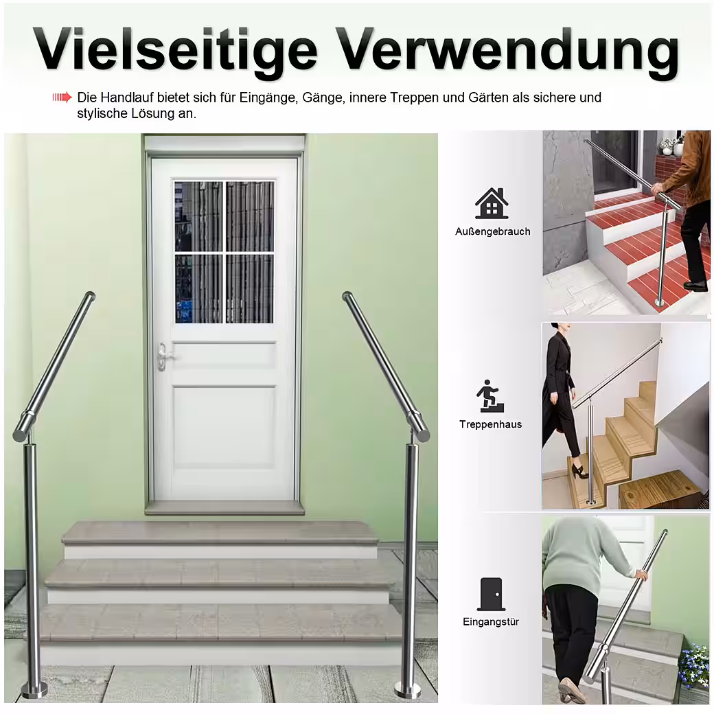 - Versatile use: The handrail can be used indoors and outdoors in hallways and stairwells, as well as at house entrances and garden steps.