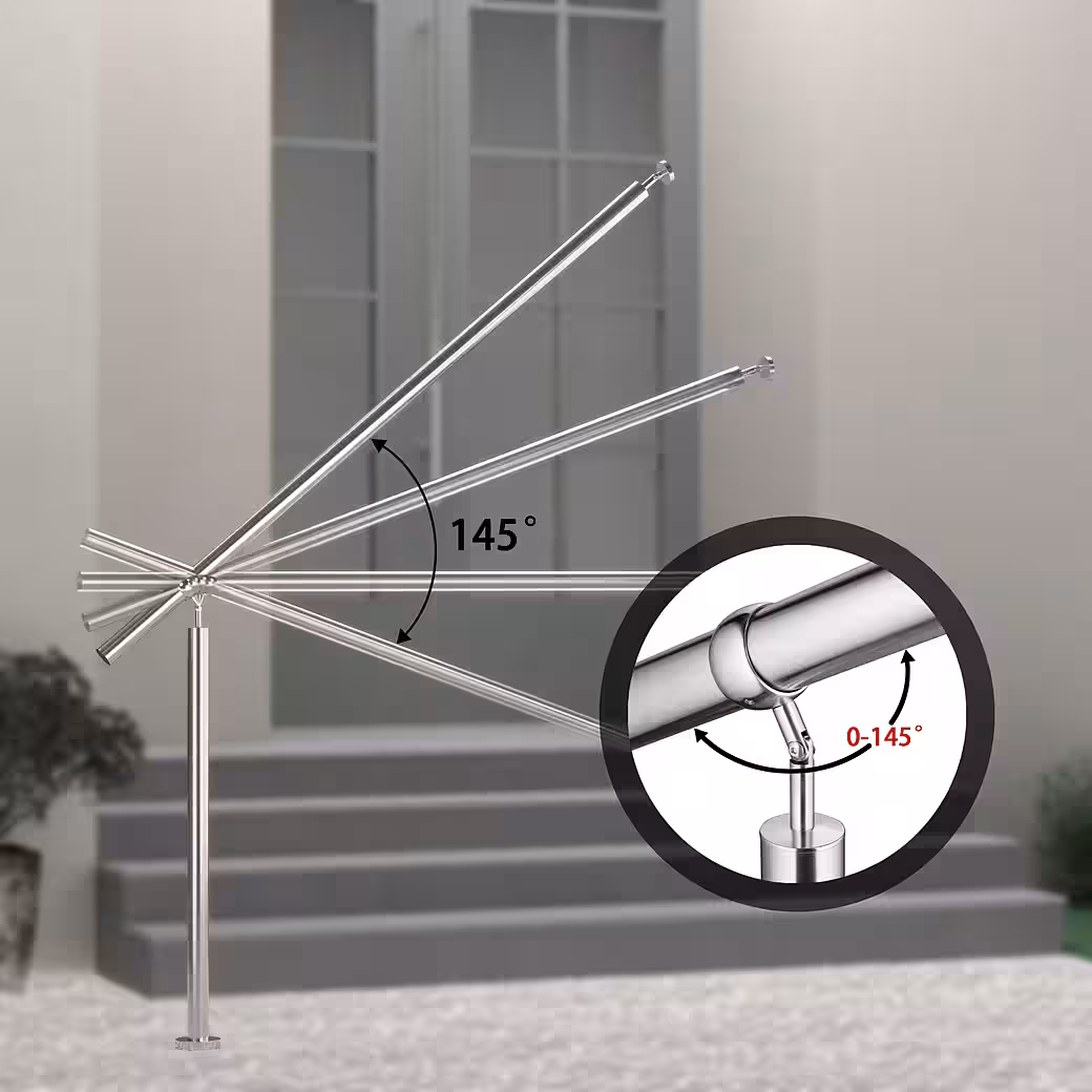 - Angle adjustability: The handrail is very flexible and can be adjusted to different inclines (0° to 145°).