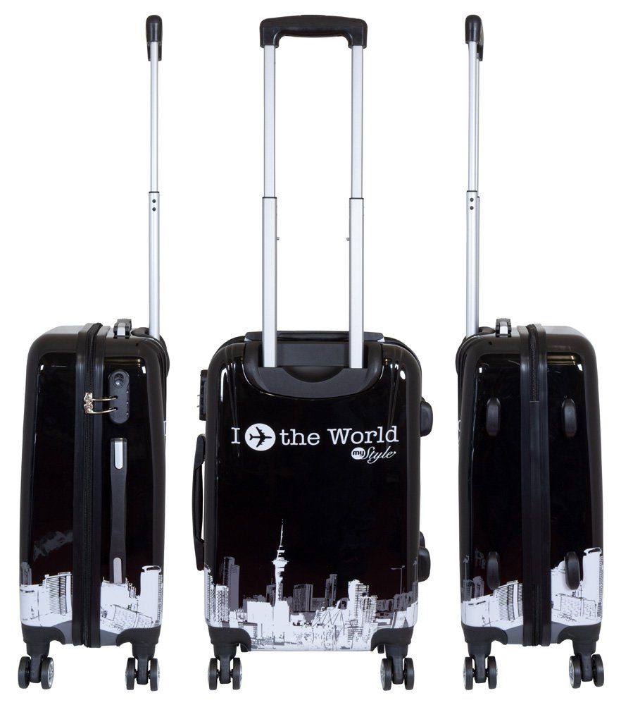- Printed high-quality black polycarbonate trolleys with “Fly the World” city motif – available in 3 sizes or as a set