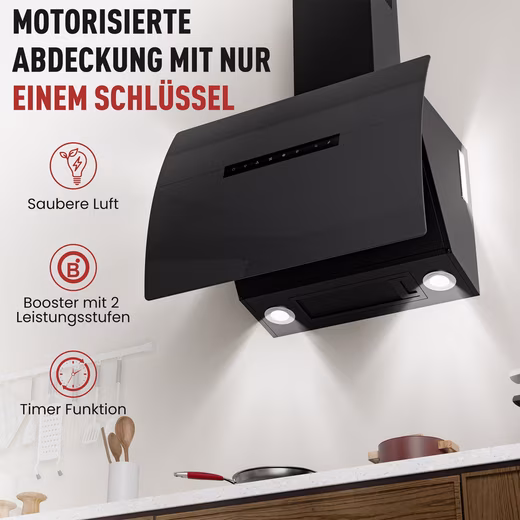 - SMART AND MODERN | With timer shut-off and air-cleaning function for automatic ventilation – even in standby mode. Premium design wall-mounted extractor hood (60 x 38.6 x 35 cm)