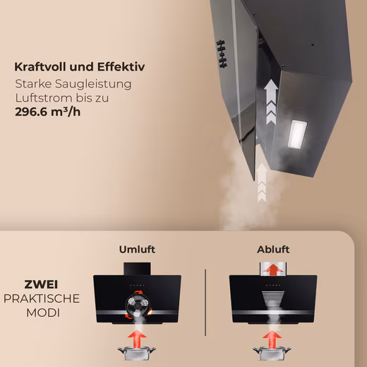- Airflow at min./max. speed: approx. 198.9 m³/h / 296.6 m³/h