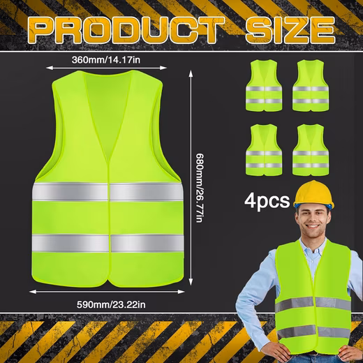 High-visibility vest 4 pieces reflective high-visibility vests car breakdown vest neon yellow