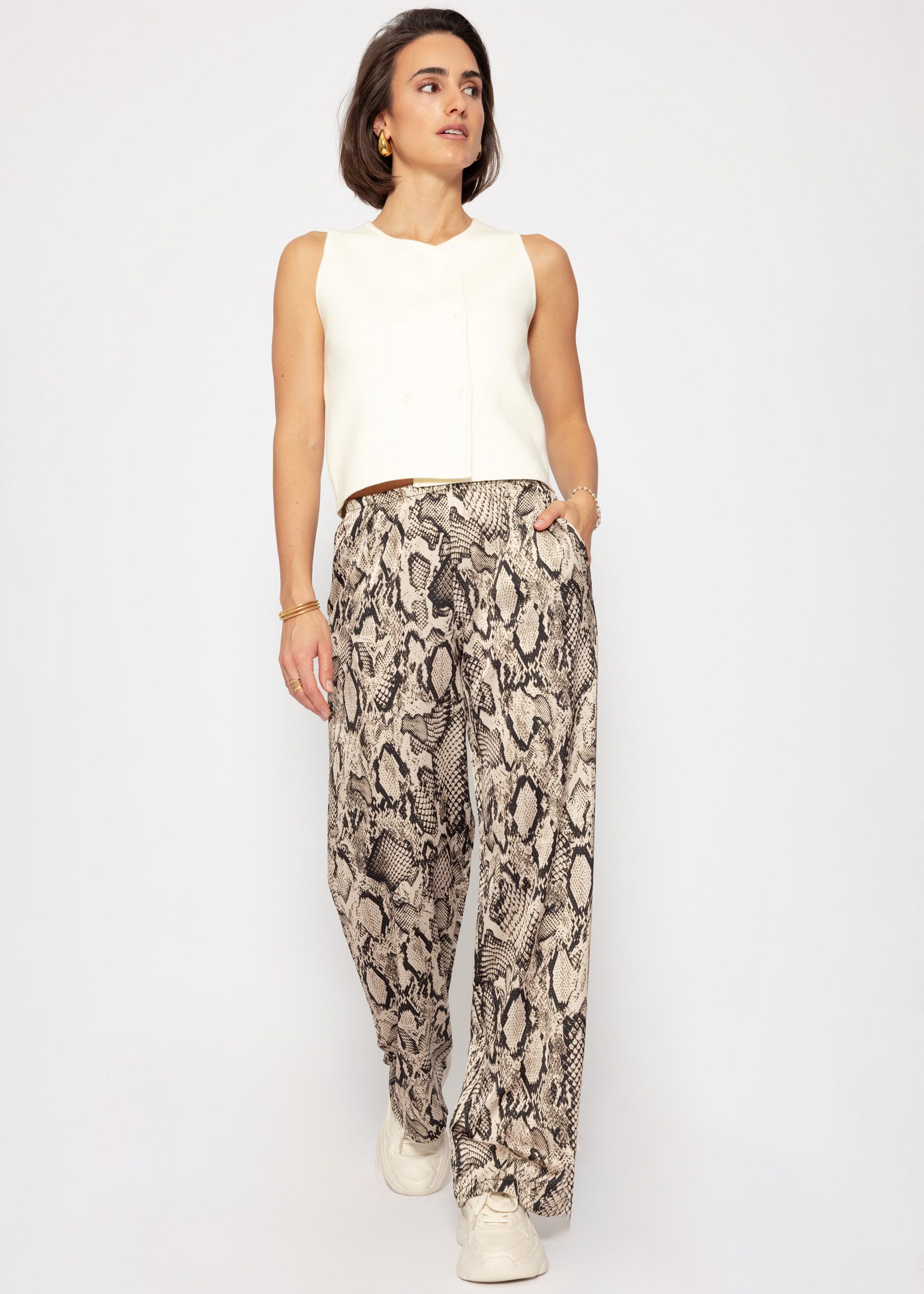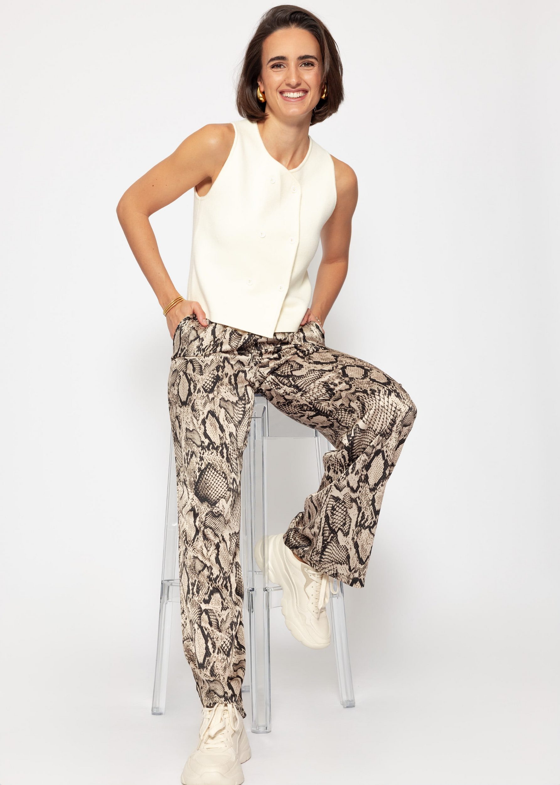 - DESIGN: Trendy satin trousers with elegant snake print and a sophisticated shine
